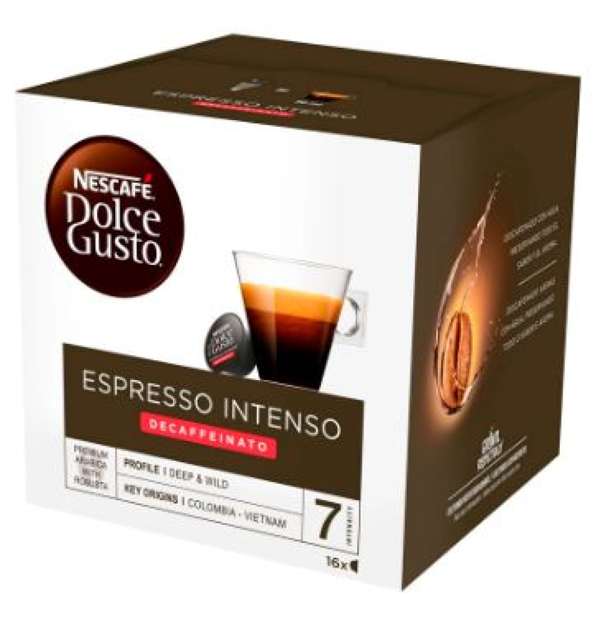 Desfrute da experiência de um expresso descafeinado com CAFE DOLCE GUSTO ESPRESSO INTENSO DECAFFEINATED . Esta mistura selecionada de grãos Arábica e Robusta da Colômbia e do Vietname oferece um sabor equilibrado e um aroma inconfundível. Graças ao seu processo natural de descafeinização com água, mantém toda a intensidade e corpo que se espera de um expresso, mas sem cafeína, ideal para os amantes de café que procuram uma opção sem estimulantes. Compatibilidade exclusiva com máquinas de café Nescafé DOLCE GUSTO. Intensidade de sabor 7 numa escala de até 12. Feito com grãos de café Arábica e Robusta cuidadosamente selecionados. Processo natural de descafeinização que preserva o sabor e o aroma. Cápsulas hermeticamente fechadas para máxima frescura. Caixa de 16 unidades para 16 deliciosas chávenas de café expresso. Este café proporciona uma experiência rica e satisfatória, perfeita para qualquer altura do dia. As cápsulas são concebidas para preservar a qualidade e garantir que cada chávena tem o sabor excecional de um autêntico expresso. É a opção ideal para quem pretende saborear um café intenso e sem cafeína.