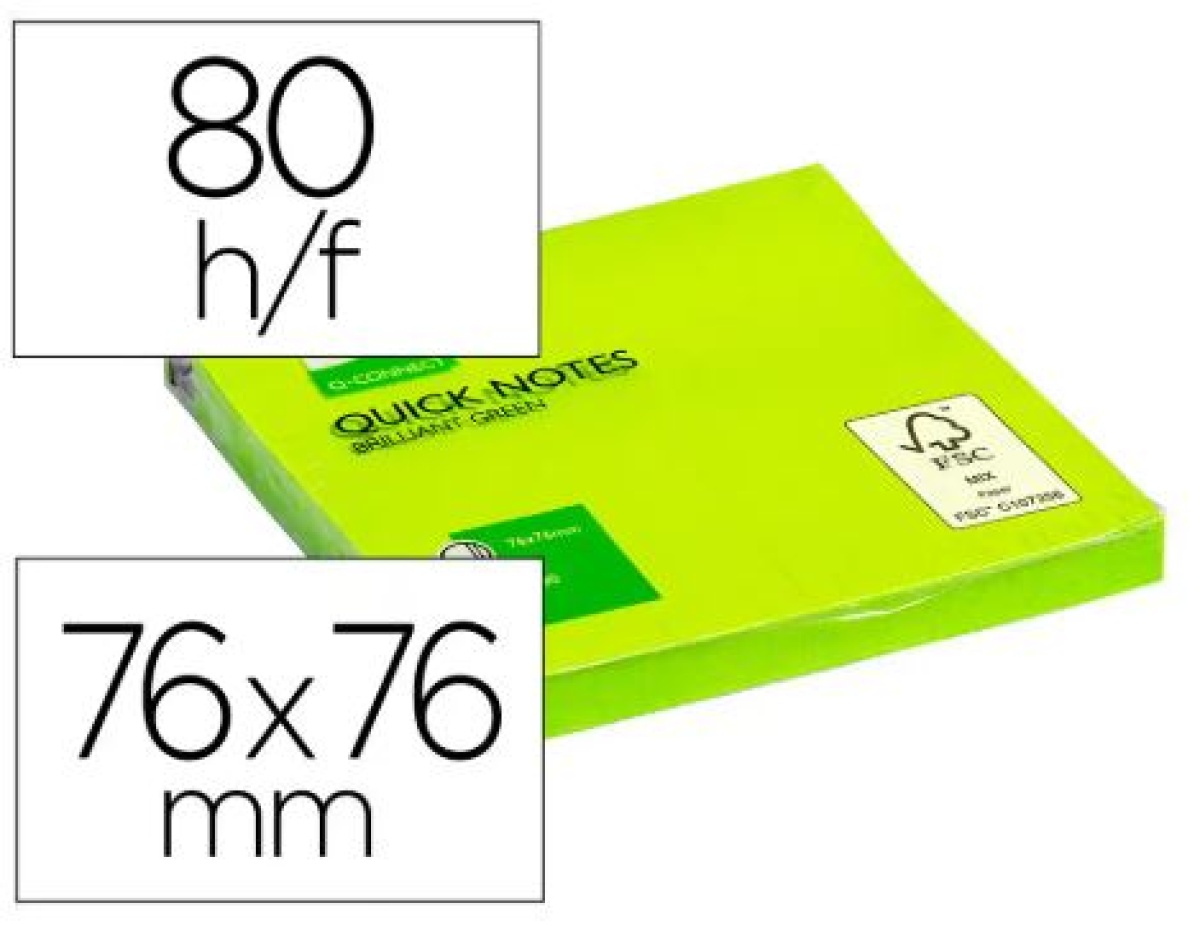 O bloco de notas autocolante amovível Q-CONNECT 76 x 76 mm em verde néon é perfeito para anotar dados úteis em qualquer ambiente, seja profissional, educacional ou pessoal. Com 80 folhas por bloco, estas notas autocolantes oferecem uma elevada visibilidade e uma fácil deslocação para diversas superfícies. Adesão temporária: as notas aderem e descolam facilmente sem deixar resíduos, permitindo uma realocação rápida e descomplicada. Visibilidade melhorada: A sua cor verde néon garante que as notas são altamente visíveis e não passam despercebidas. Tamanho conveniente: as dimensões de 76 x 76 mm são ideais para notas curtas e listas de tarefas sem ocupar muito espaço. Versatilidade: Indicado para diversas superfícies como papel, plástico, metal e madeira, sendo útil em escritórios, escolas e residências. Estas notas autocolantes são uma ferramenta essencial para a organização diária, proporcionando flexibilidade e maior visibilidade. Além disso, são económicos e, em alguns casos, feitos com materiais reciclados, promovendo a sustentabilidade. Mantenha a almofada num local seco e limpo para garantir uma aderência ideal e evite utilizá-la em superfícies delicadas para evitar possíveis danos.