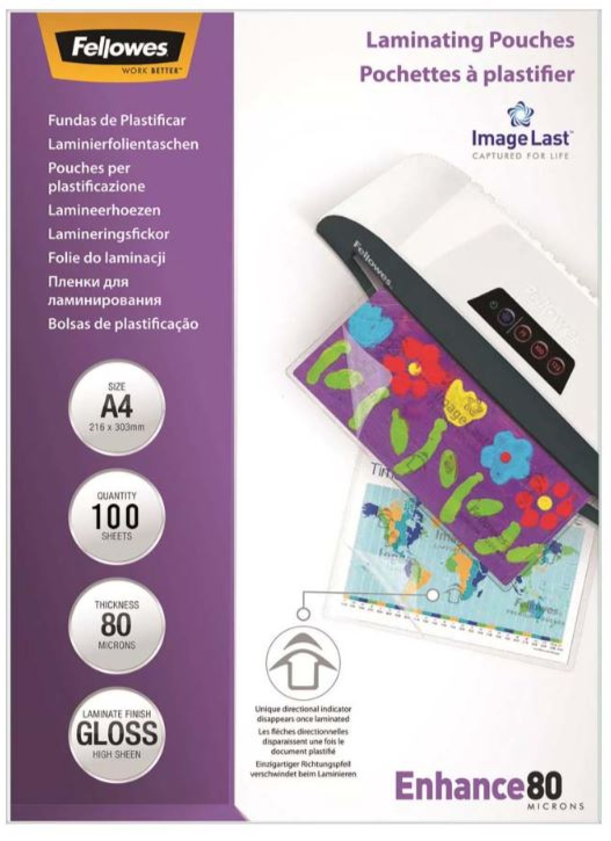 Bolsas Plastificaçao Fellowes A4 220x306mm 80mic Adesivas 100un