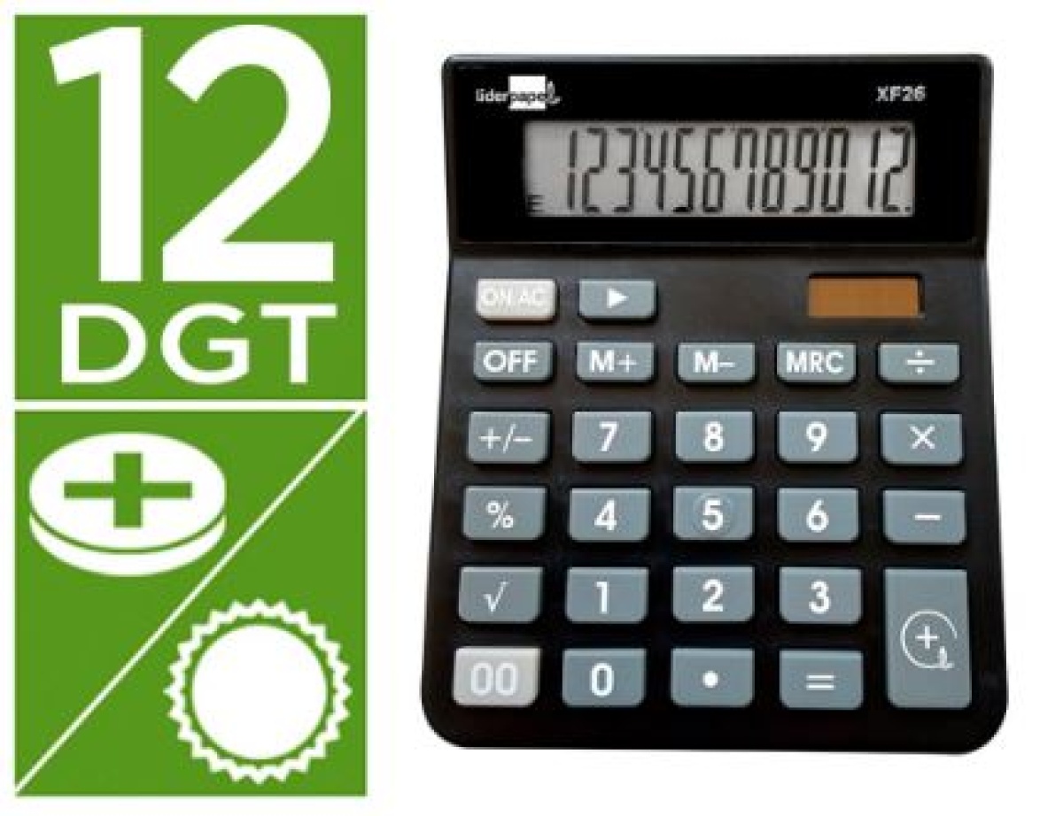 Calculadora de Secretaria Liderpapel XF26 12Digitos Solar e Pilhas Preta