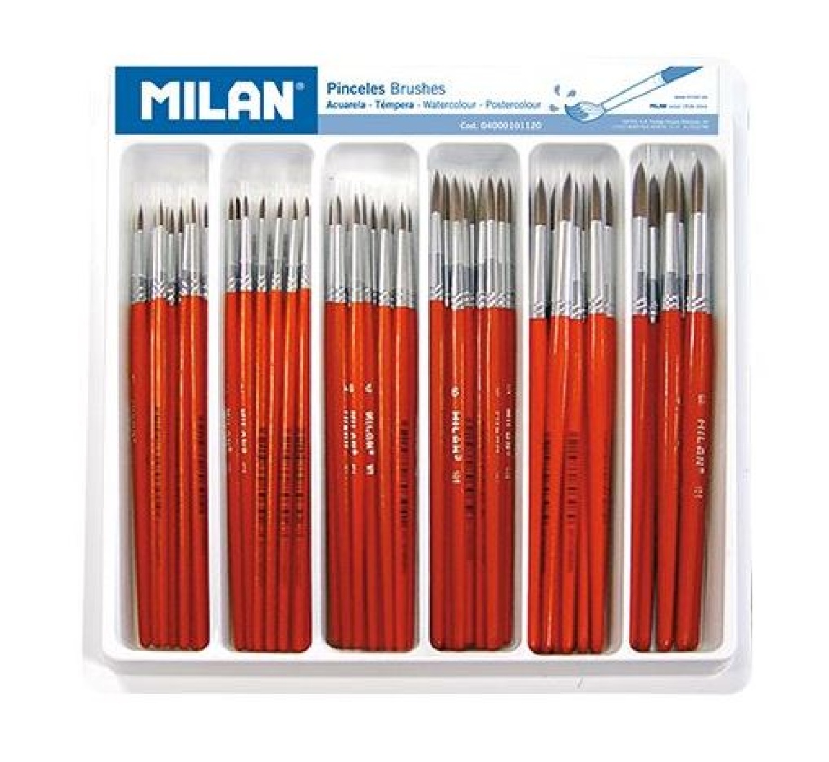 Expositor de 120 Pinceis Milan Ref.101 Redondo (Aguarela & Guache)