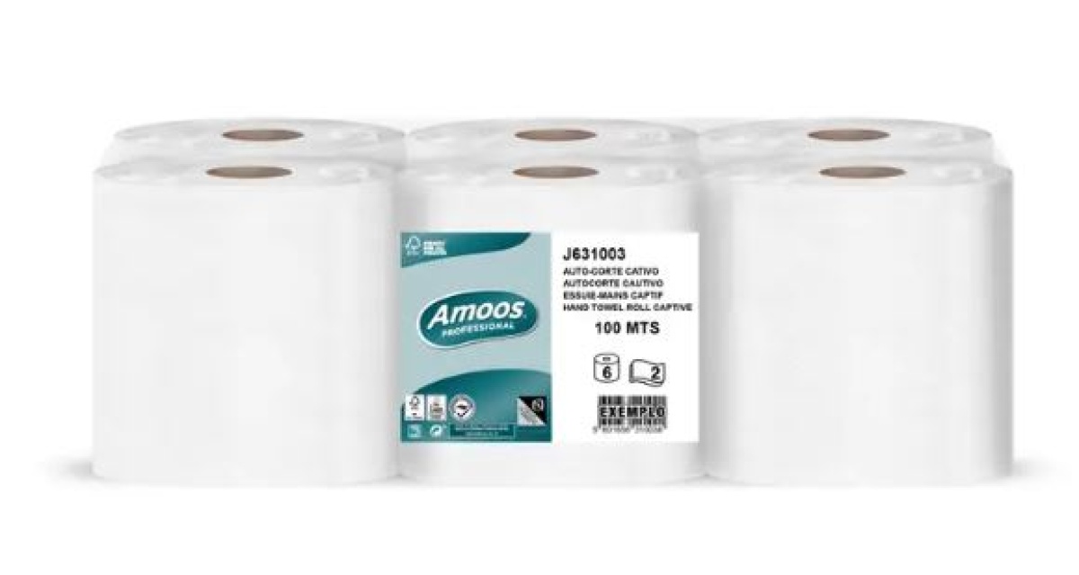 Rolo Toalha Mao Auto-Corte Amoos Professional 2Fls 100mt Pack 6uni