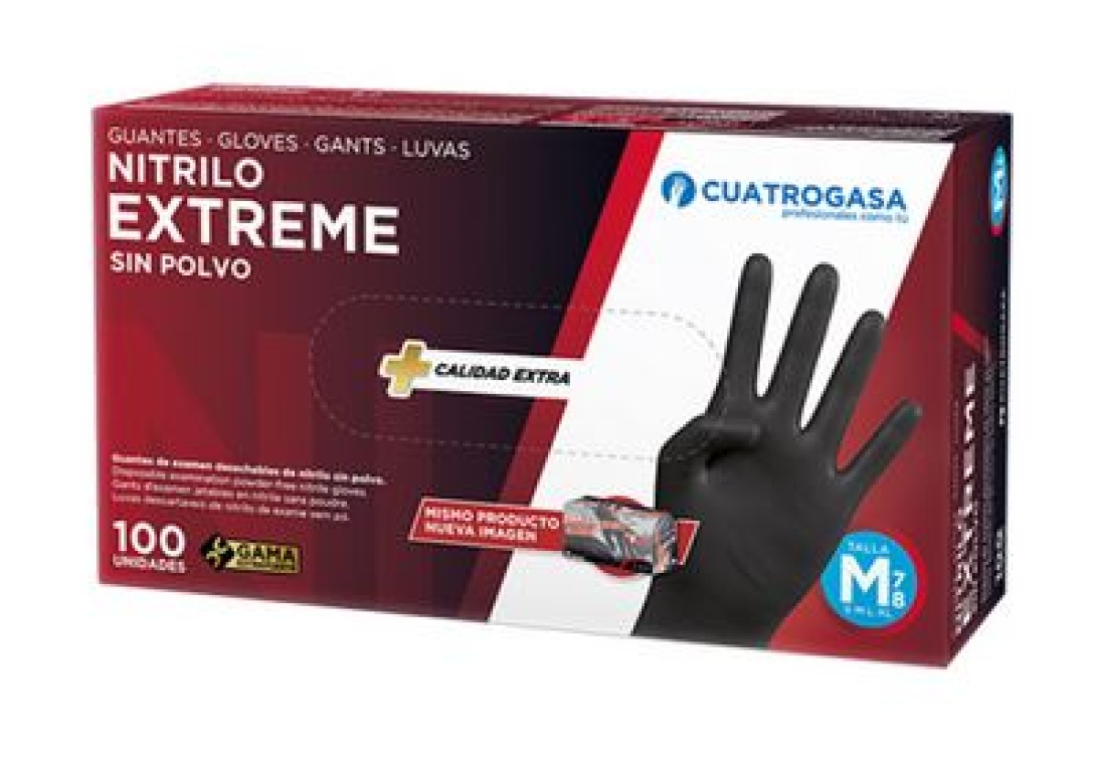 Luva Nitrilo S/Po Cuatrogasa Extreme Negro 6g M (7-8) Cx.100